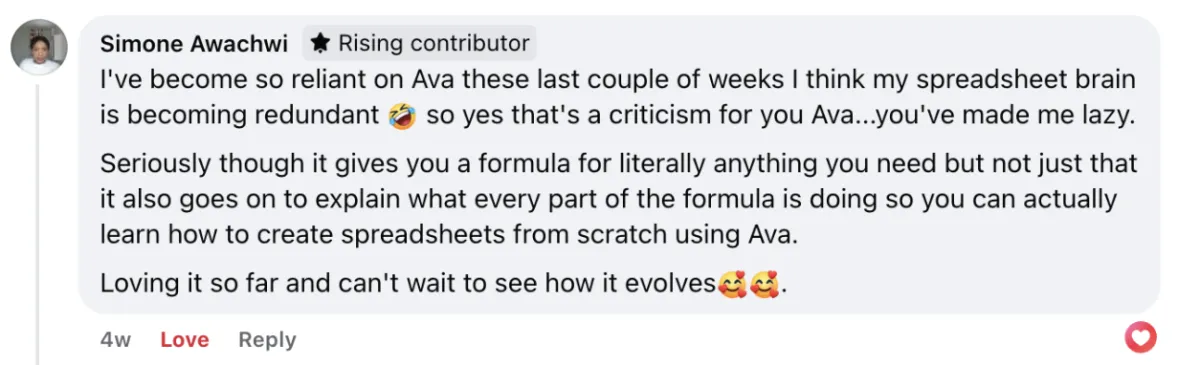 If you’ve ever spent 2 hours trying to fix a formula you copied from a forum post in 2017… You NEED Ava.