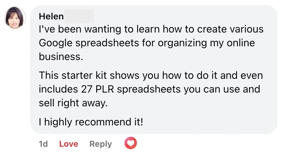 we’ve helped hundreds of students make real sales using our PLR spreadsheet templates.