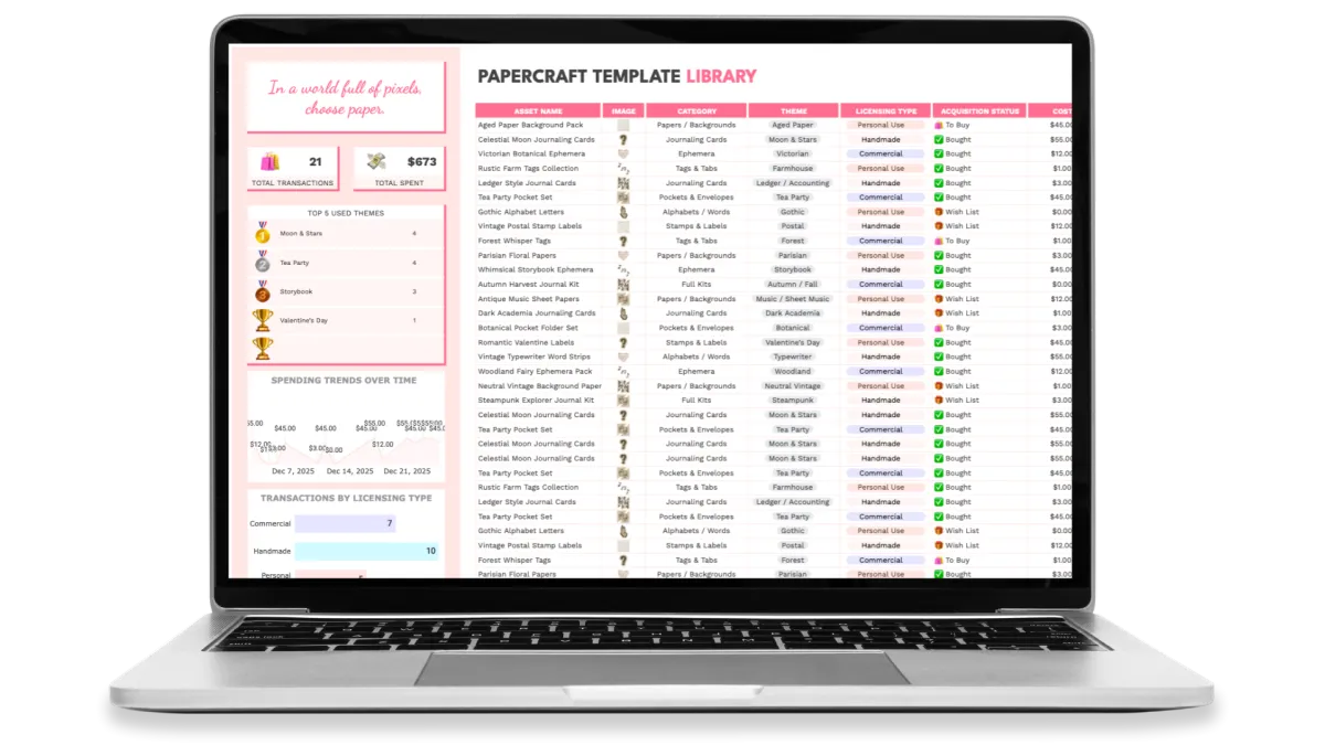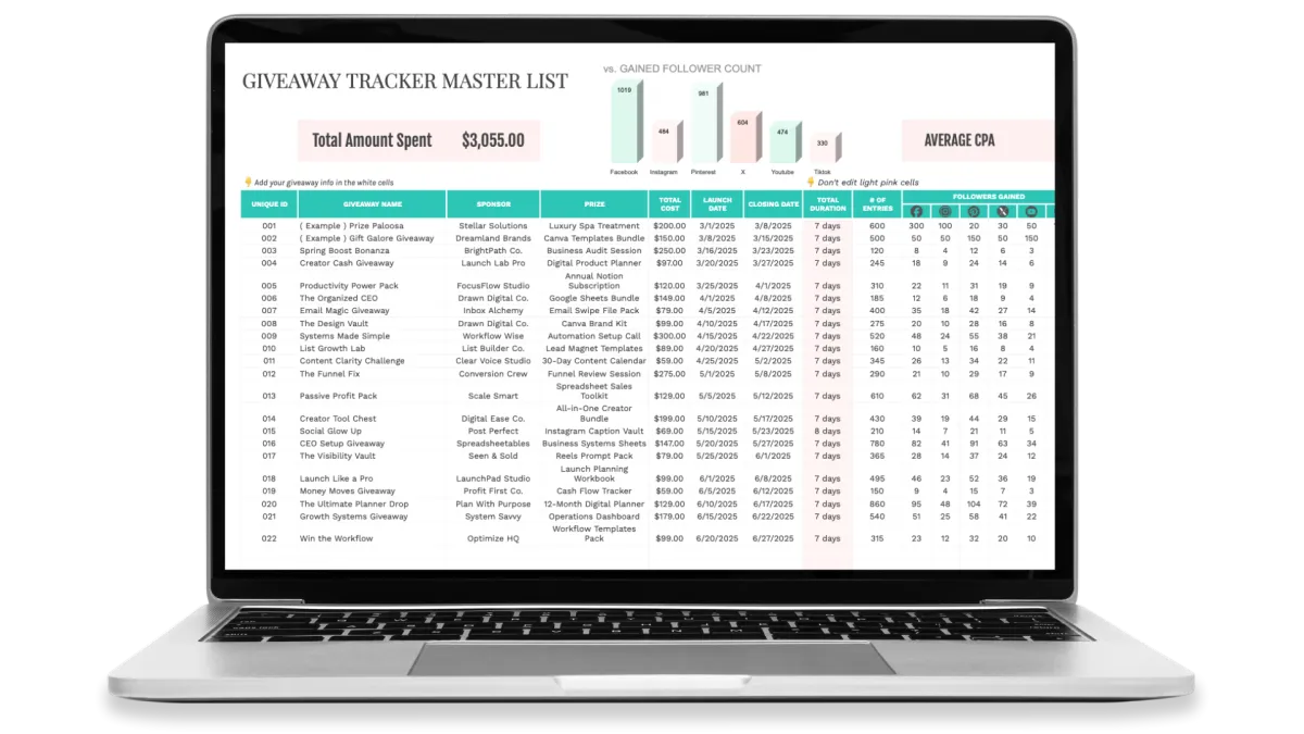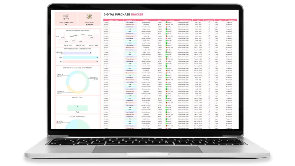 We use Google Sheets which is FREE. We also provide Canva templates to use as mockups for your listings.
